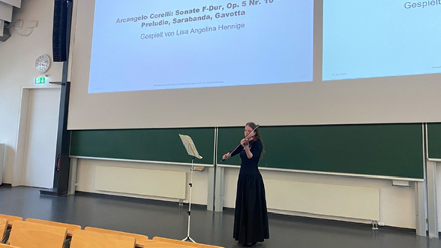 Für die musikalische Gestaltung sorgte Lisa Angelina Hennige, die mit Werken von Arcangelo Corelli und Johann Sebastian Bach das Programm mit virtuosem Violinspiel bereicherte und der Feier eine besondere Atmosphäre verlieh.
