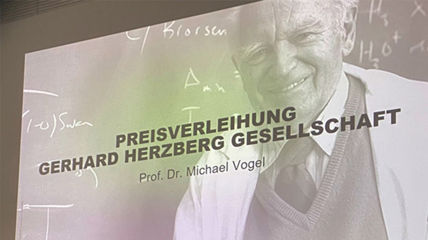 Ein Höhepunkt der Feier war die Verleihung der Preise der Alumnivereinigung „Gerhard Herzberg Gesellschaft“, überreicht durch Prof. Dr. Michael Vogel, der zudem eine Ansprache im Namen der Gesellschaft hielt.