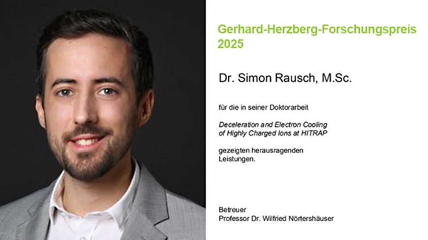 für seine herausragenden Leistungen in seiner Doktorarbeit „Deceleration and Electron Cooling of Highly Charged Ions at HITRAP“