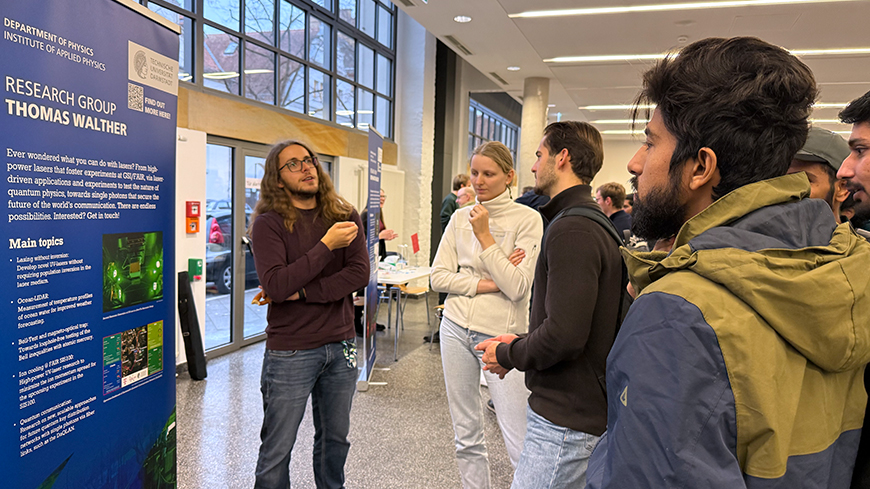 Die Atmosphäre der Veranstaltung war locker und offen: Bei Snacks und Getränken entstand Raum für Austausch, Vernetzung und spontane Diskussionen. Mehrere Forschungsgruppen hatten Experimente und Demonstrationen aufgebaut, um ihre Forschungsschwerpunkte anschaulich zu vermitteln und komplexe Inhalte greifbar zu machen.